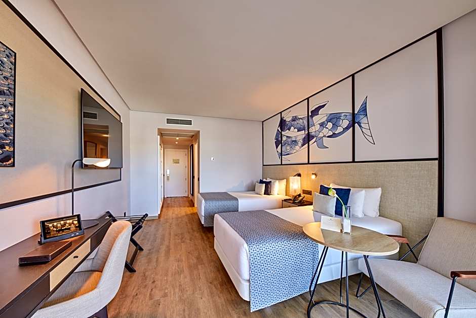 The spacious twin/double room features air conditioning, a mini-bar, a balcony with sea views as well as a private bathroom boasting a shower.
